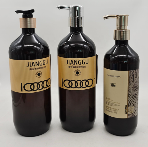 Bottiglia vuota rotonda ambra trasparente in plastica cosmetica bottiglia all'ingrosso 300ml 500ml Shampoo oro pompa bottiglia